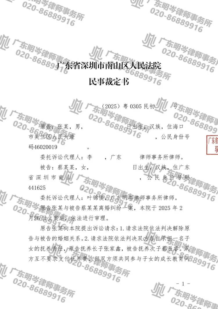 近日,深圳市南山区人民法院对一起离婚纠纷案件依法作出裁定,认定男方在女方分娩后未满一年内提出离婚,不符合法定受理条件,依法驳回原告起诉。广东明岑律师事务所叶锦俊律师作为被告蔡某某(化名)的委托诉讼代理人,成功帮助当事人在程序阶段终结诉讼,维护了女方在哺乳期内的法定权益。